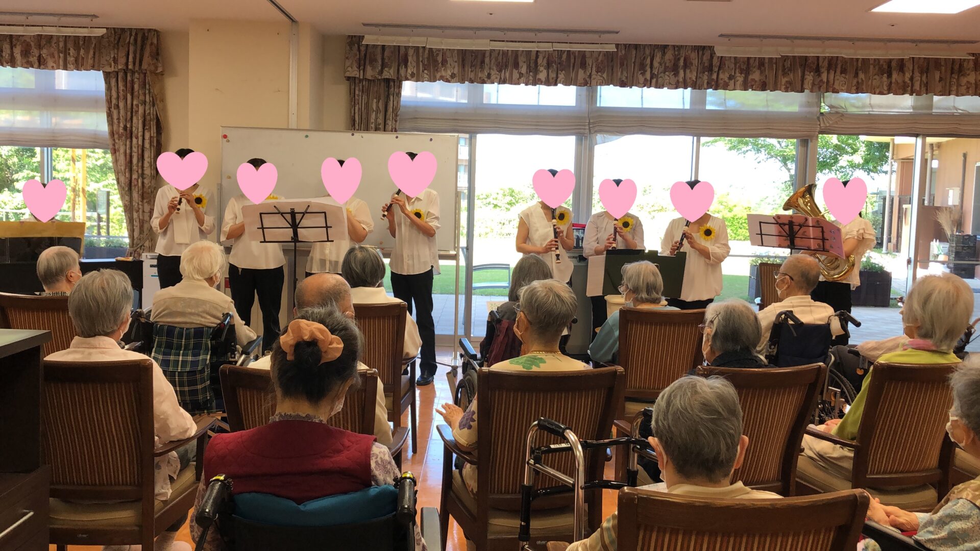 音楽好きな入居者さんが多く、終わってからは