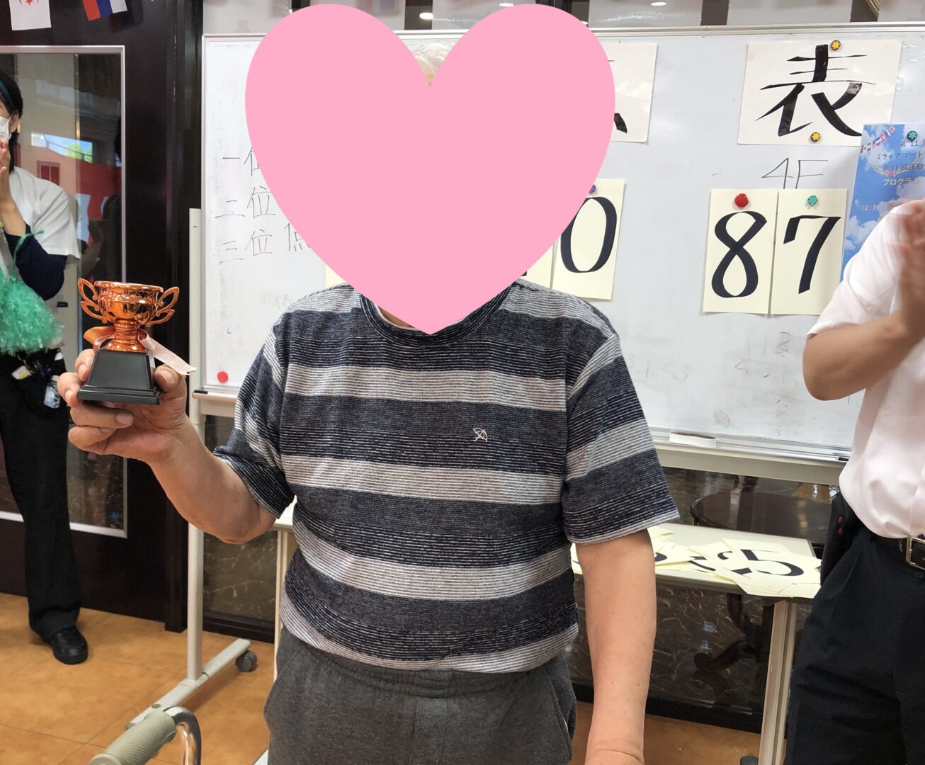 トロフィーを片手に大喜びです☺