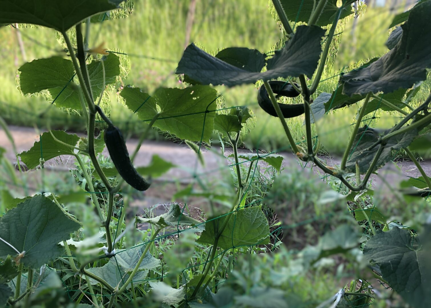 丸まっているものもありますが、収穫できそうな大きさですね🥒