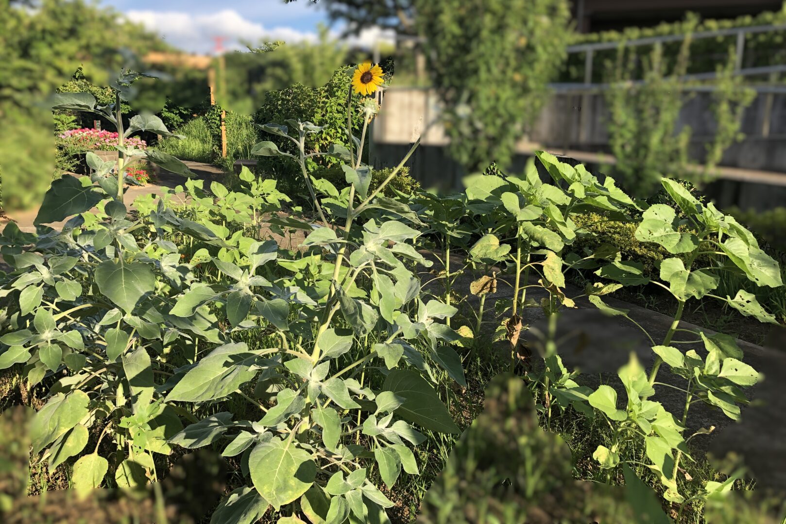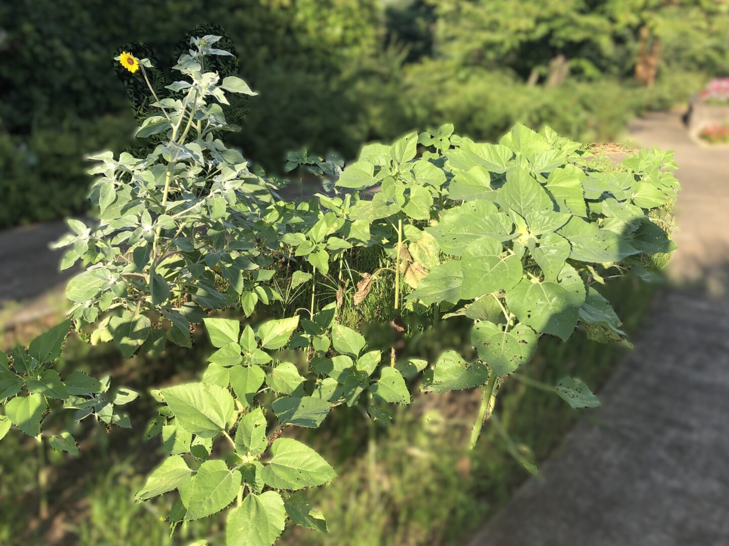 こうみると、手前に植えてる明るめのひまわりの成長スピードがゆっくり目ですね🌱