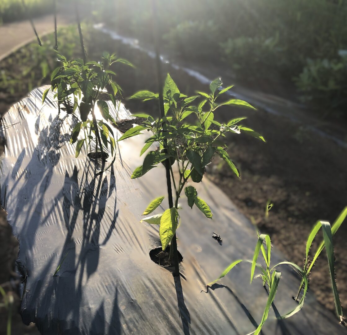 手前と、真ん中の部分にもピーマンの実ができています