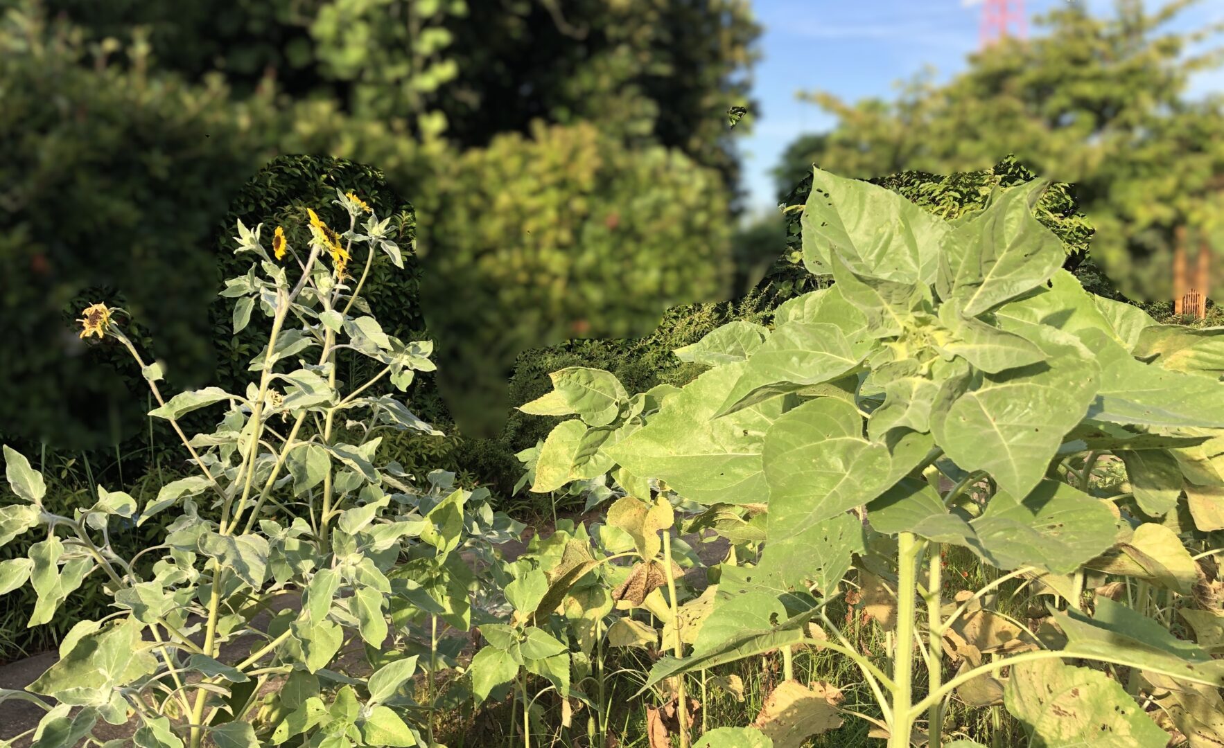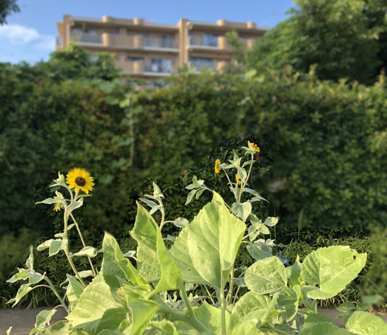 もう一つのひまわりは咲いていないですが、葉を大きく広げています🌱