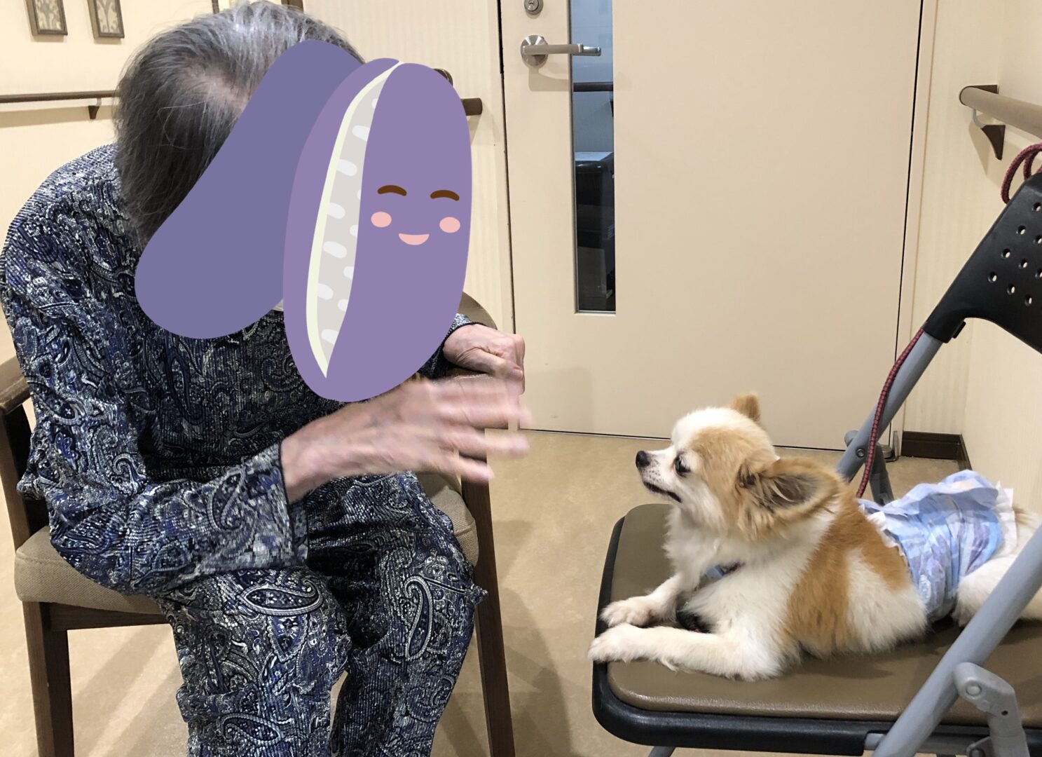 入居者さんも犬が好きなようで、手を振ってみたりお話をしてみていました🐶