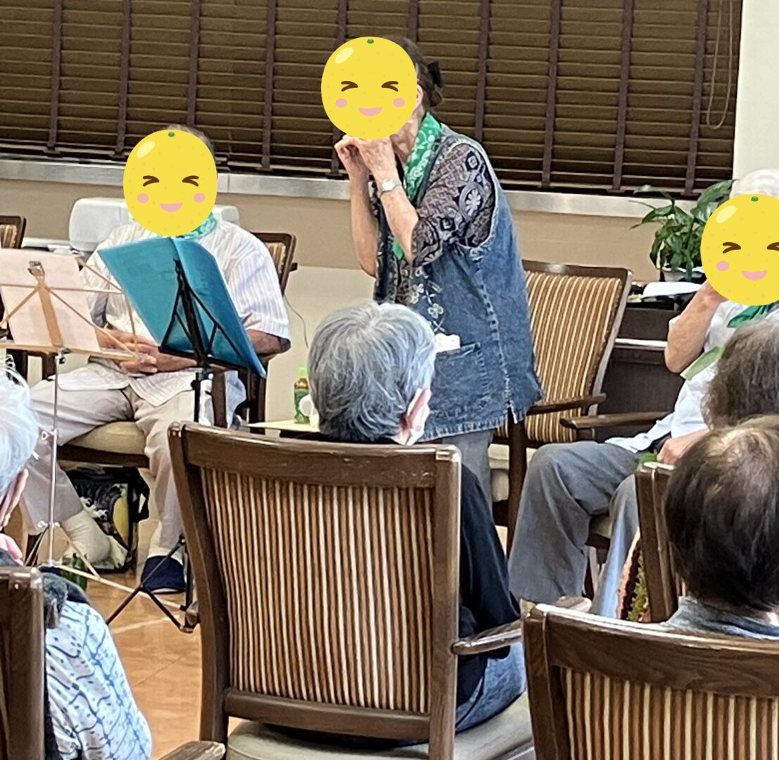 音楽好きな入居者さんも多いので、皆さんくぎ付けでした。