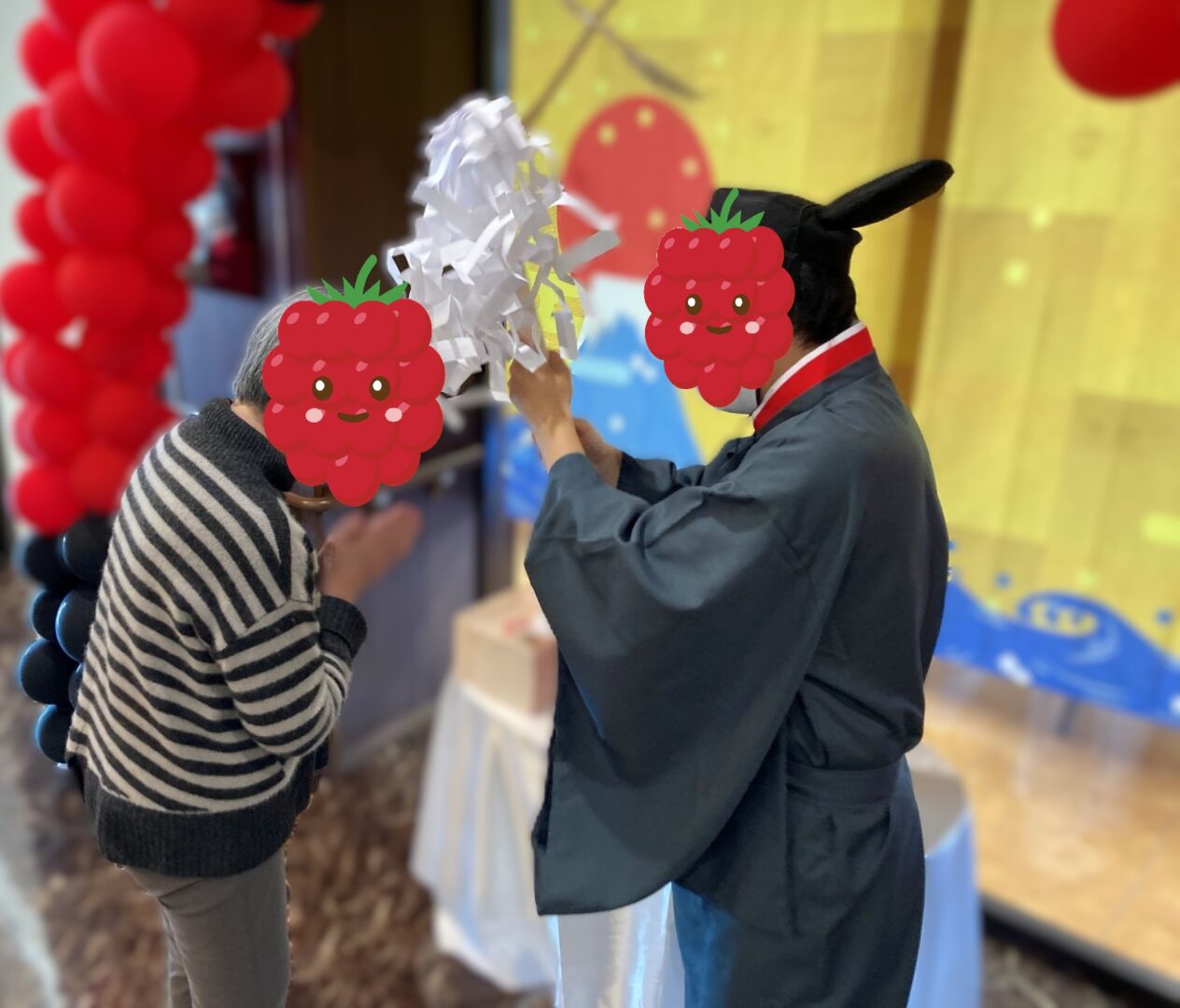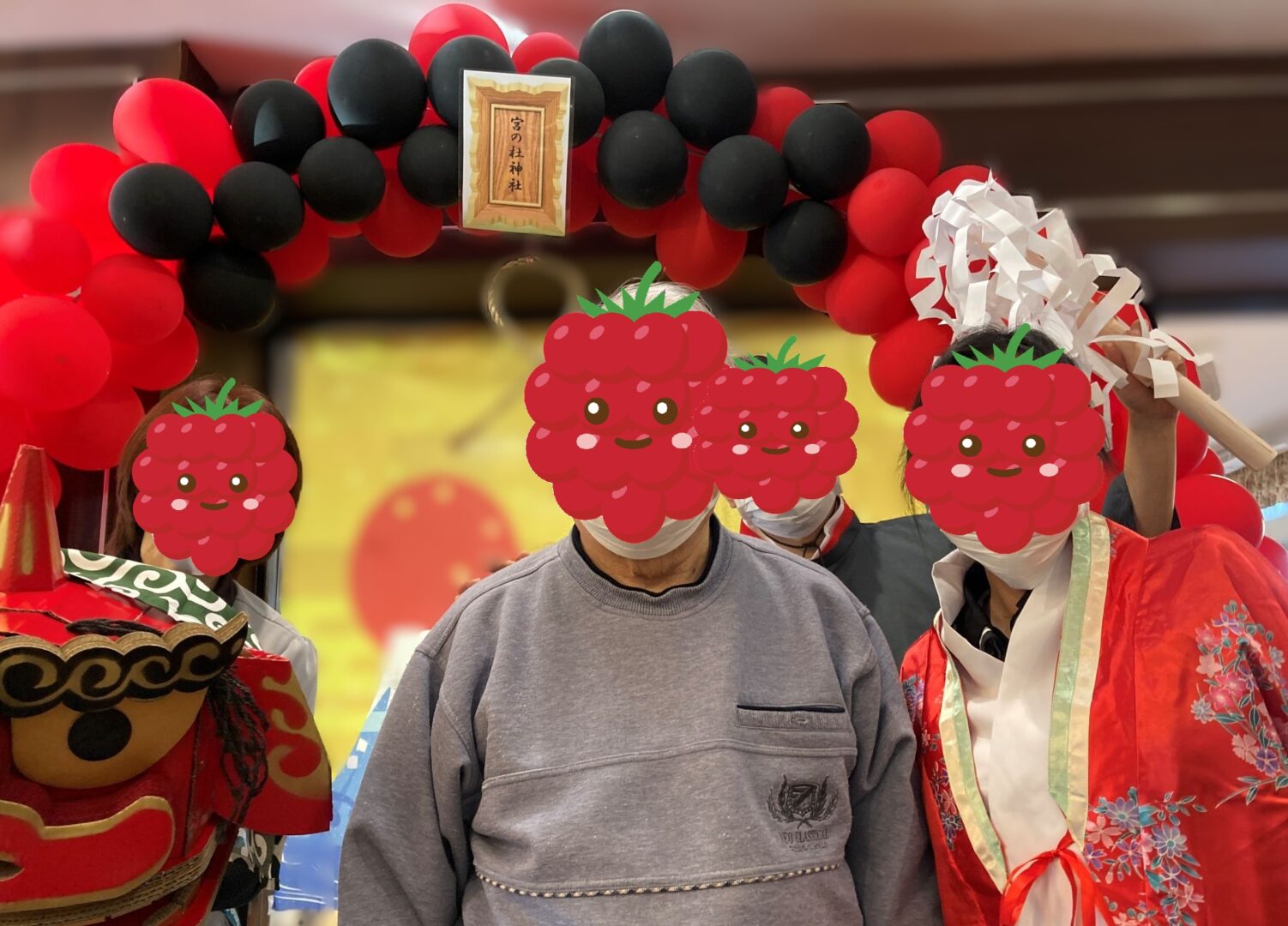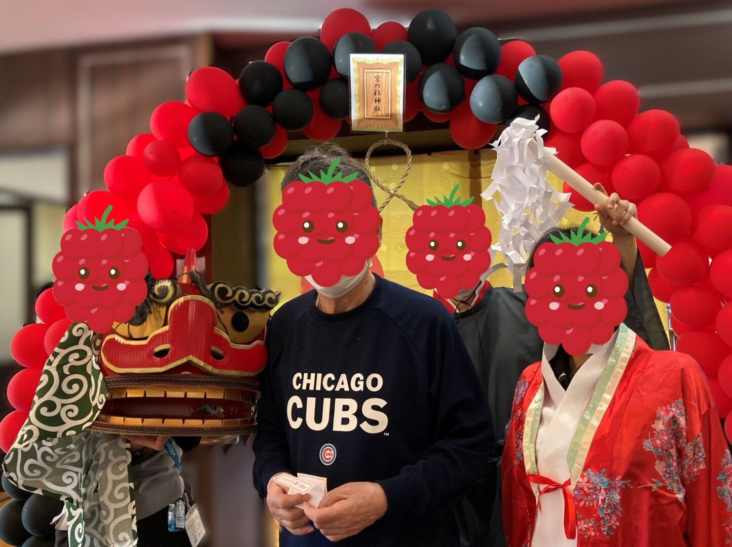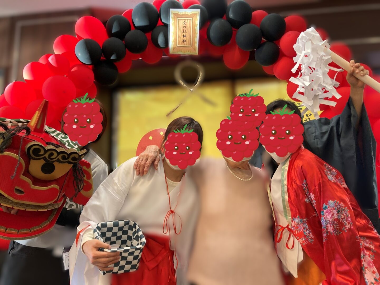 赤と黒で鳥居をイメージして風船でアーチ状にしました⛩