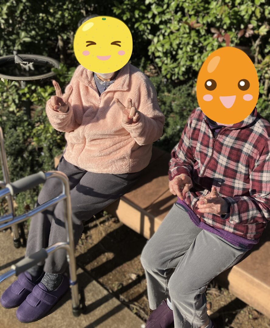 この日は晴れて、暖かかったのでガーデンのベンチに座って日光浴。